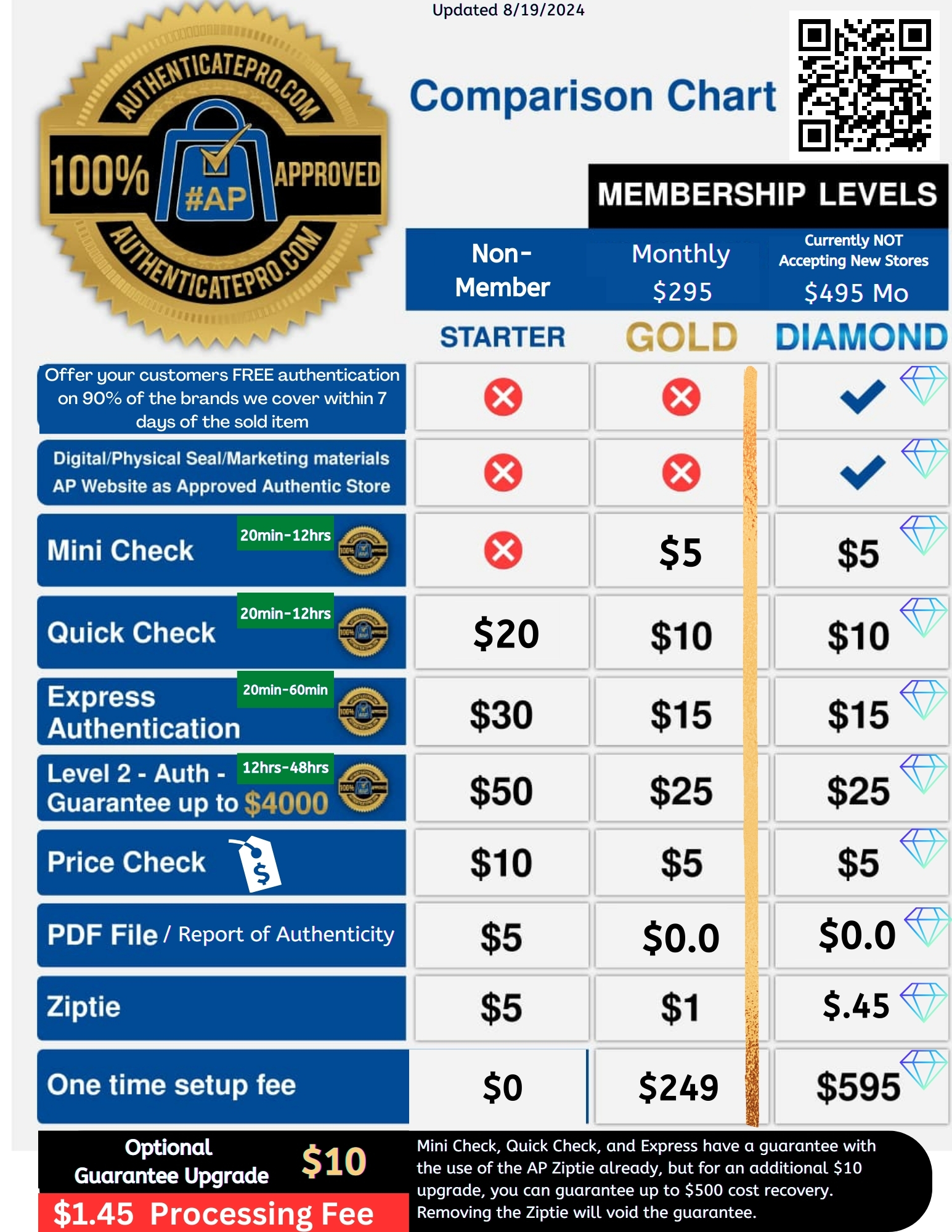 As an approved Authenticate Pro Diamond Club member (Membership info) , you will receive these benefits.